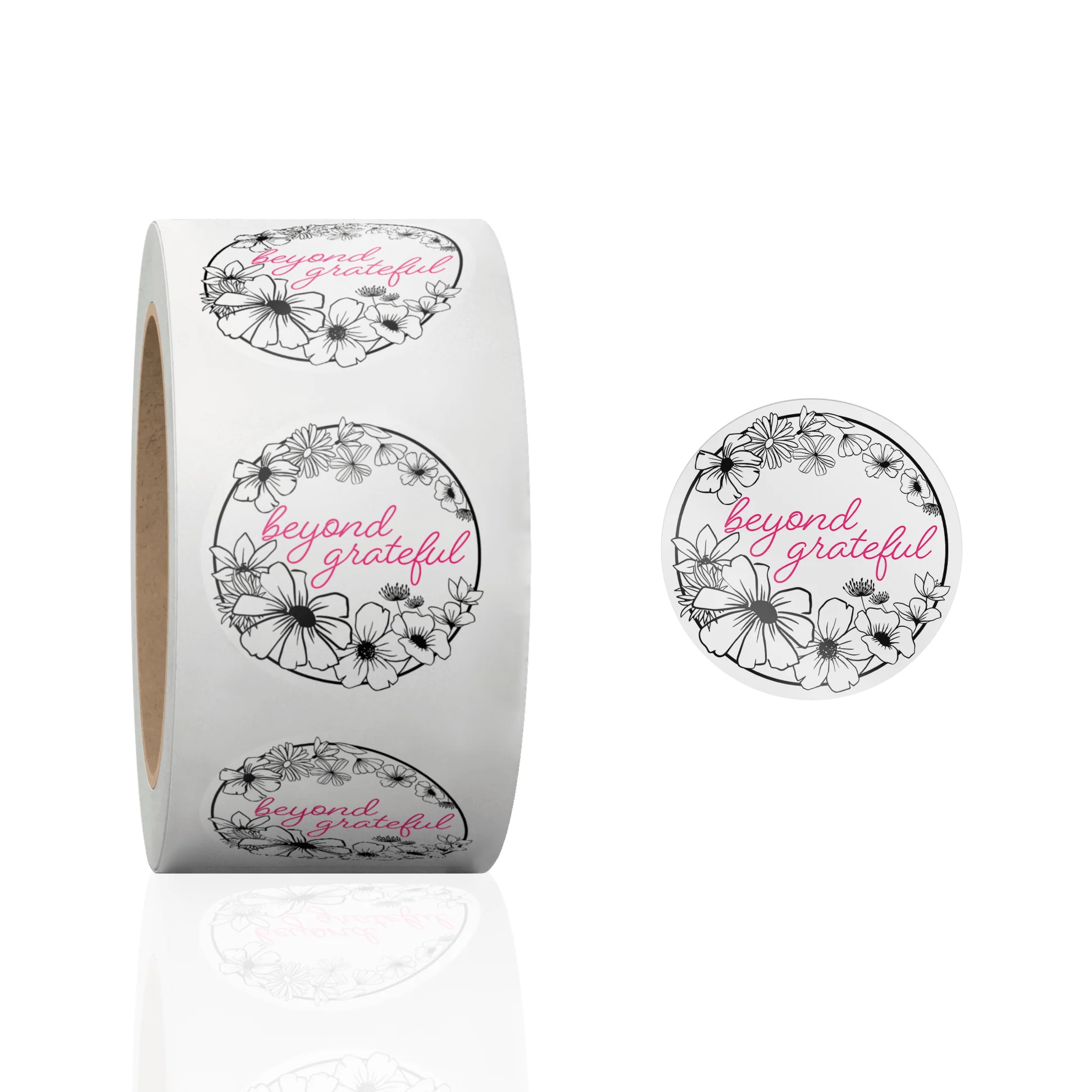 Black and White Floral Thank You Stickers